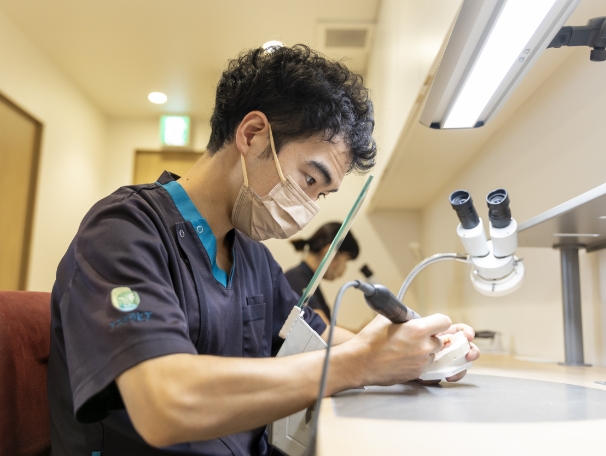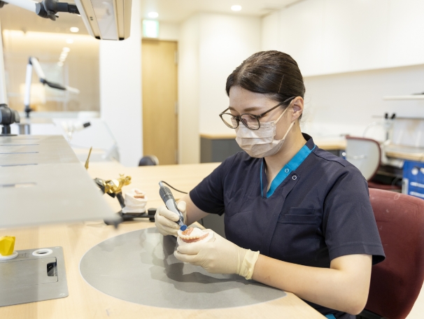 院内技工士として、手術当日に使用する補綴物や模型の準備・セットアップなども担当。治療全体の流れを理解し、歯科医師との密な連携が求められます。