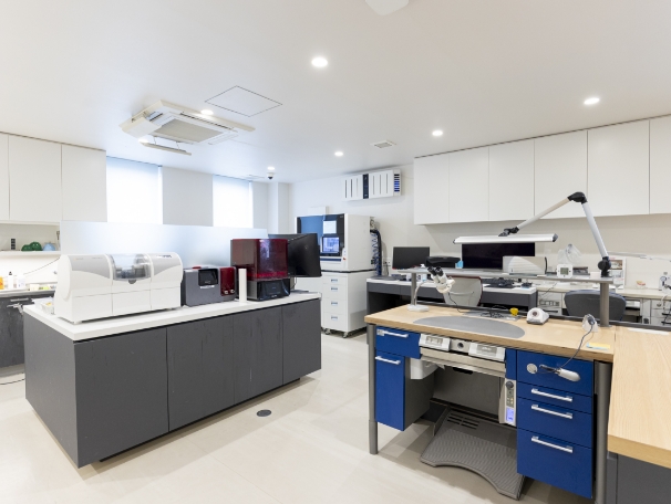 アスクラピアの院内ラボでは、インプラントを中心とした高度な自費補綴に取り組み、歯科医師やチームと密に連携しながら「生きた技工」に取り組むことができます。最先端の設備と教育体制のもと、技術者としての力を高めたい方にとって、成長とやりがいを実感できる環境です。
