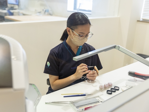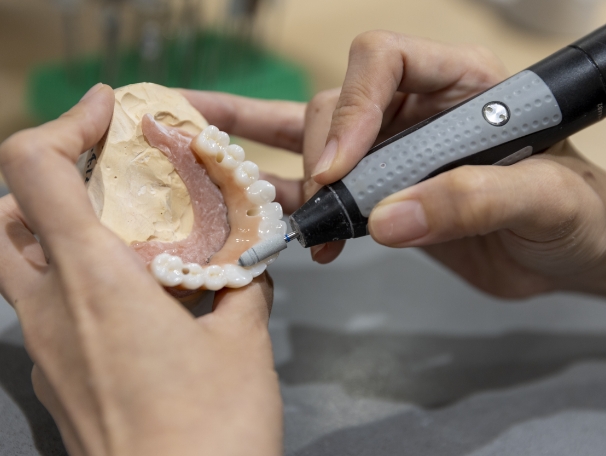 歯科技工士が義歯を丁寧に調整している様子 歯科技工士が義歯を丁寧に調整している様子
