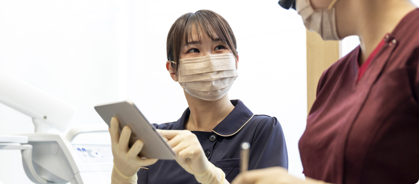 私は歯科助手未経験で、知識ゼロからのスタートだったため、日々学ぶことが多く、まだまだ成長途中です。